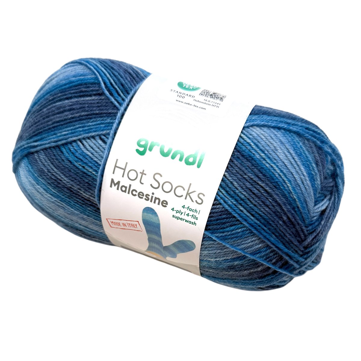 Strumpgarn som randar sig själv, 75% superwash ull, 25% polyamid.