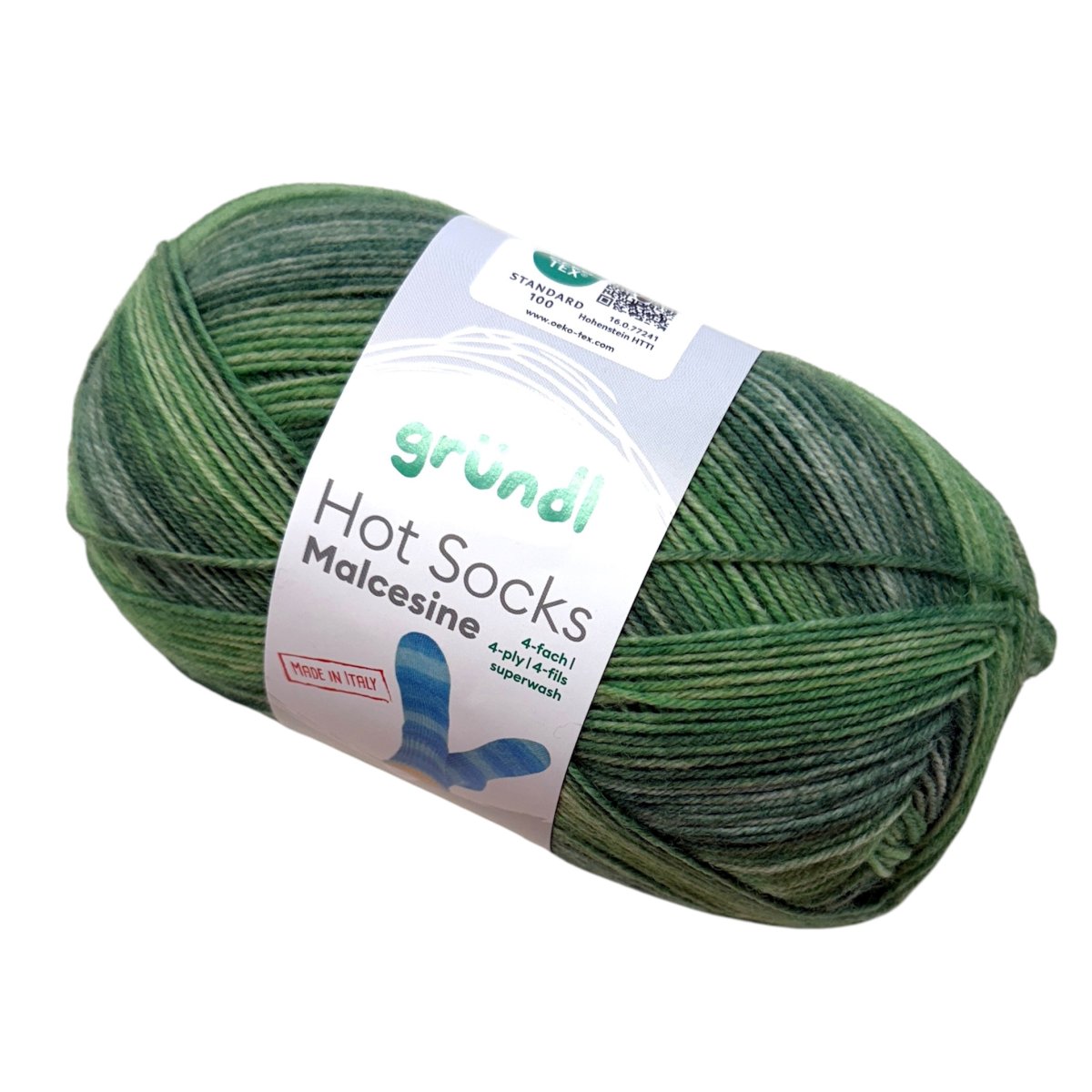 Strumpgarn som randar sig själv, 75% superwash ull, 25% polyamid.