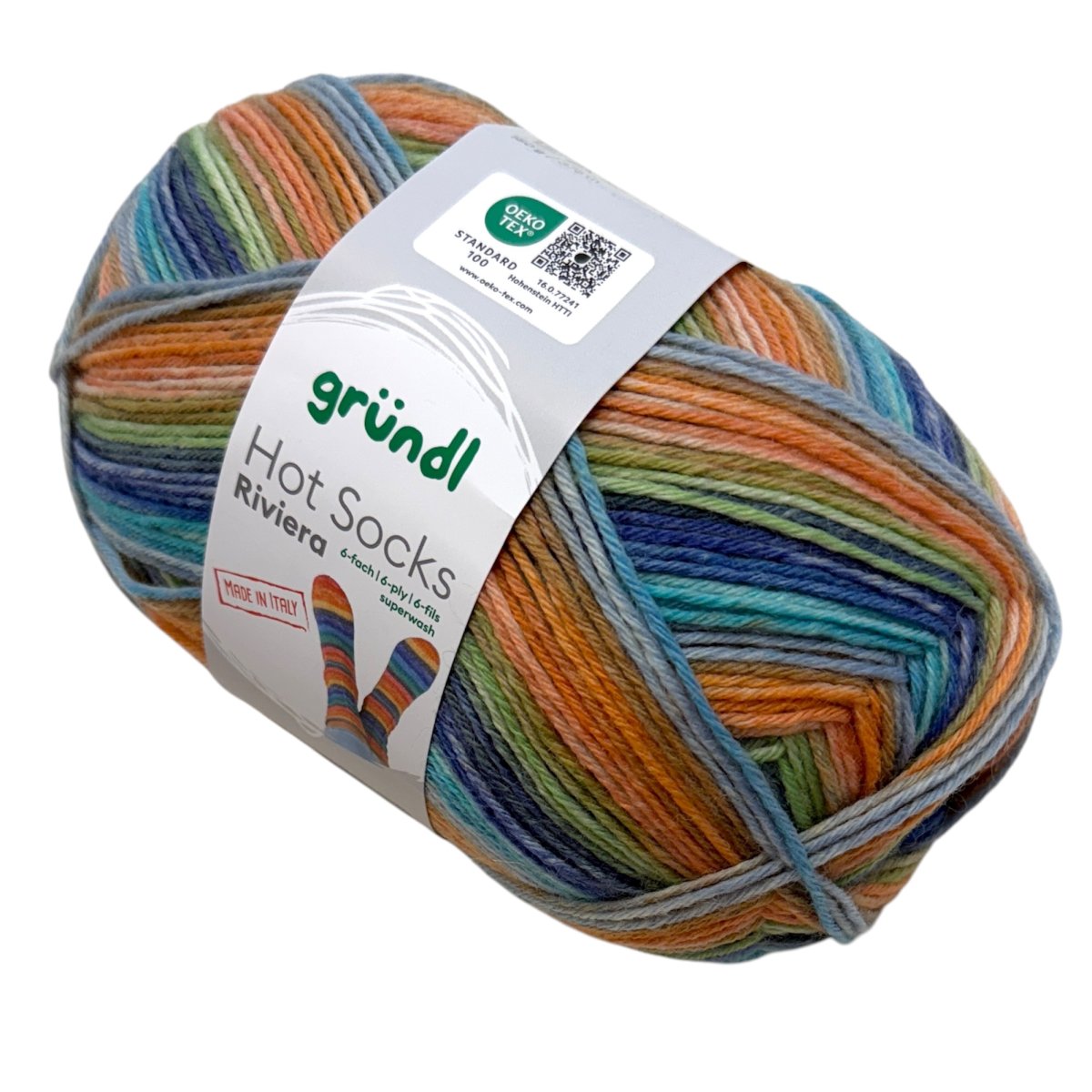 Ett självrandande sockgarn lämpligt till stickor 3 - 4 beroende på handlag.