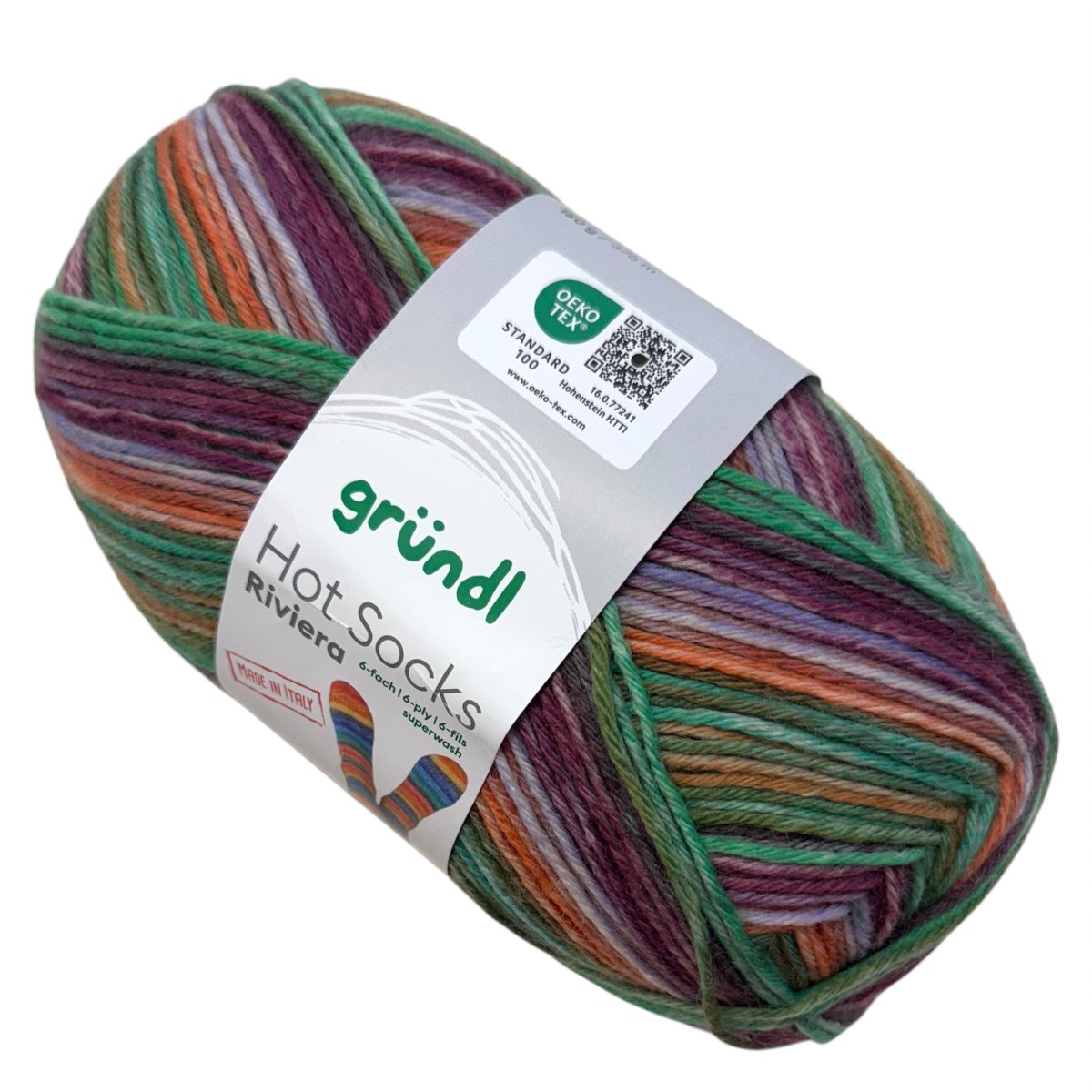 Ett självrandande sockgarn lämpligt till stickor 3 - 4 beroende på handlag.