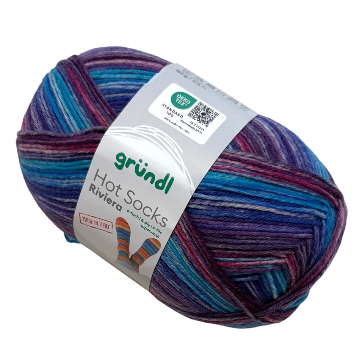 Ett självrandande sockgarn lämpligt till stickor 3 - 4 beroende på handlag.