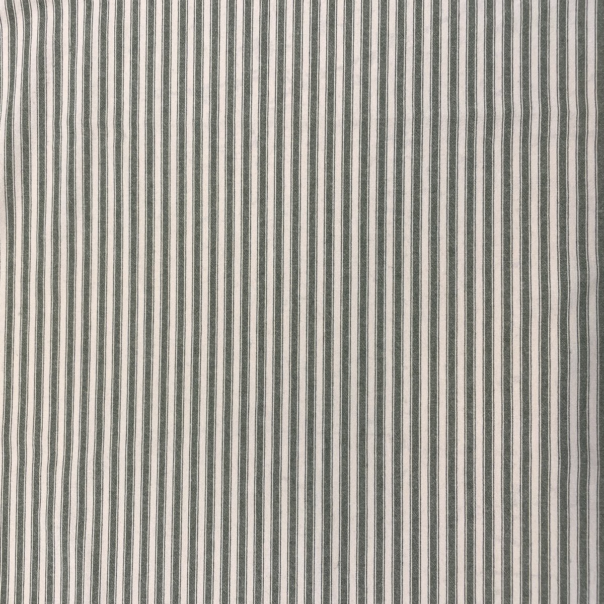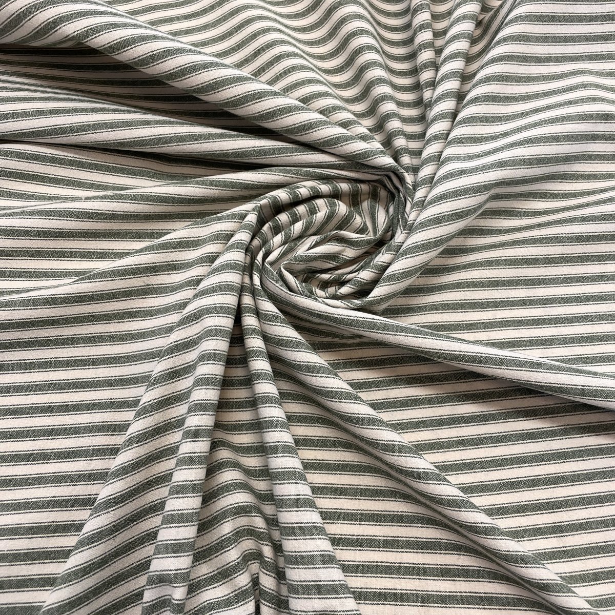 Grön/vit randigt. Passar bra till att göra kuddar, kökshanddukar, gardiner och dukar. Eller varför inte som foder till en väska eller en skjorta. Funkar till både heminredning som till kläder.