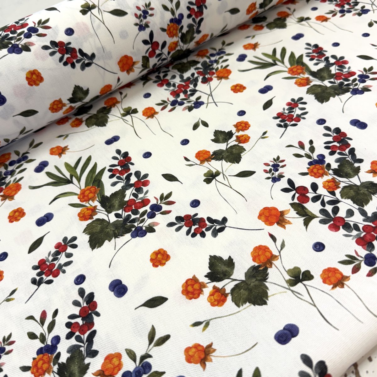 10165, gardintyg på metervara med sommarens bär.