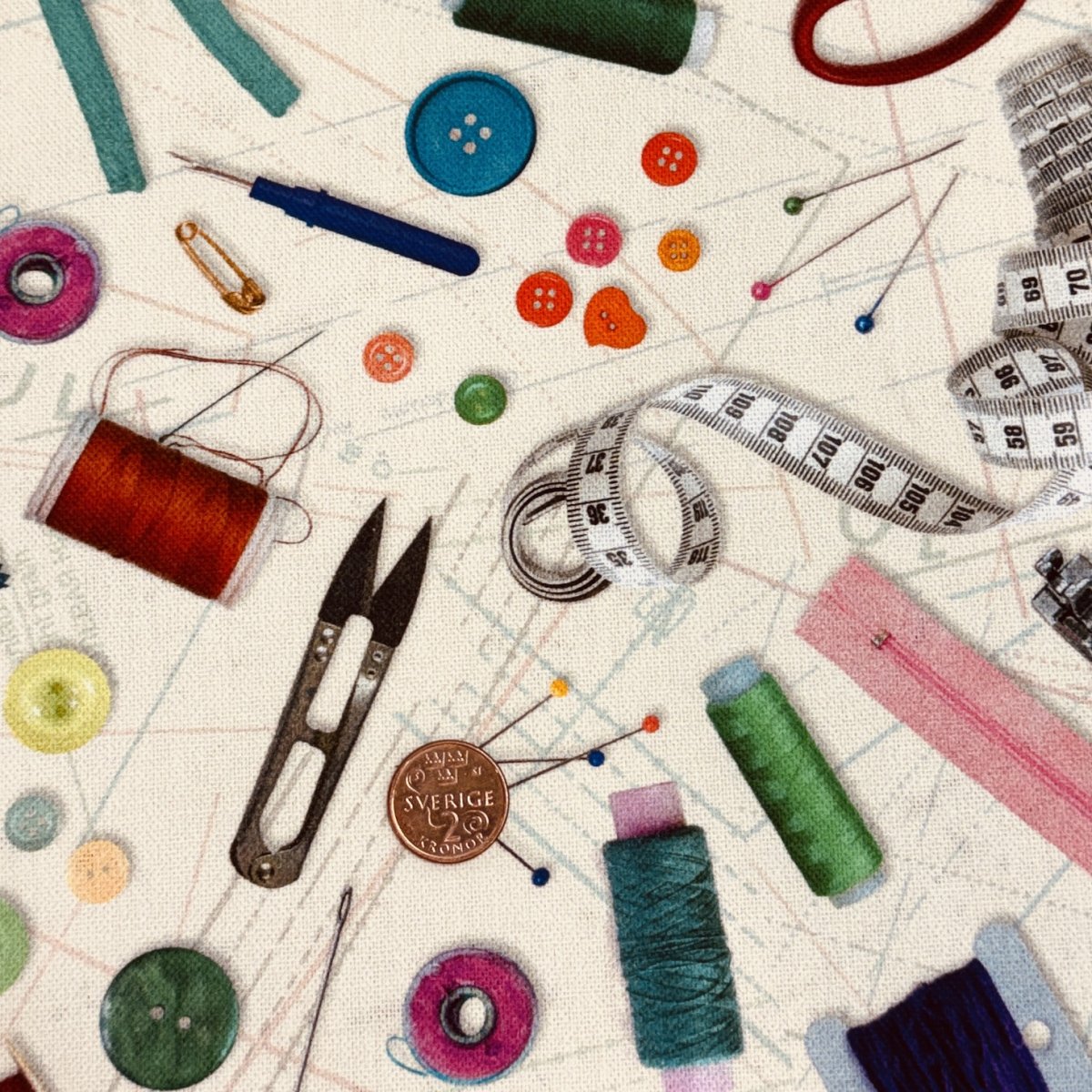 10168, inredningstyg/gardintyg på metervara med färglada sybehör.