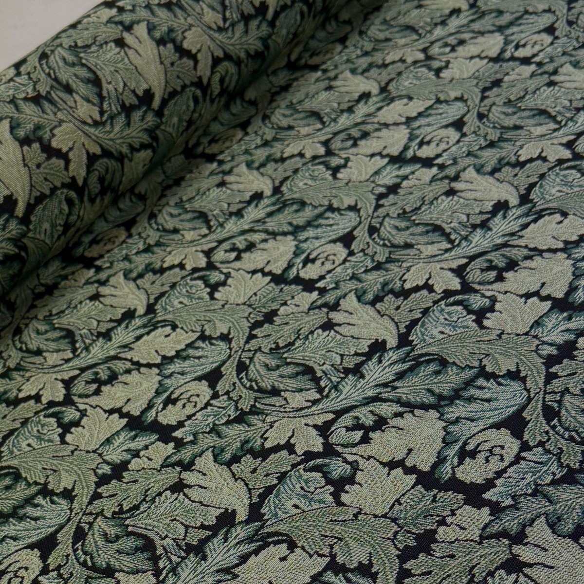 200293,Gobelängväv med Morrismotiv i gröna toner, tygbredd 140 cm.