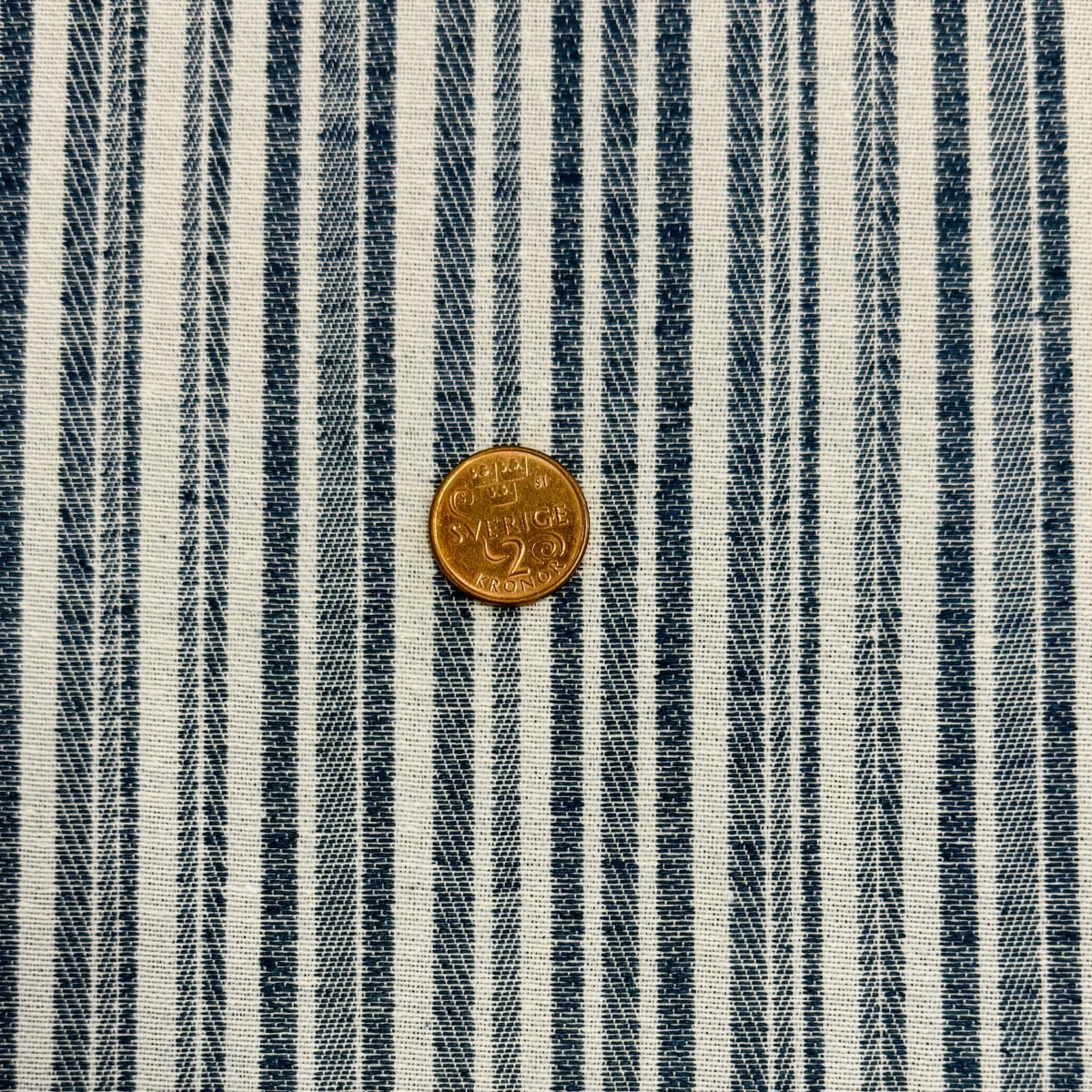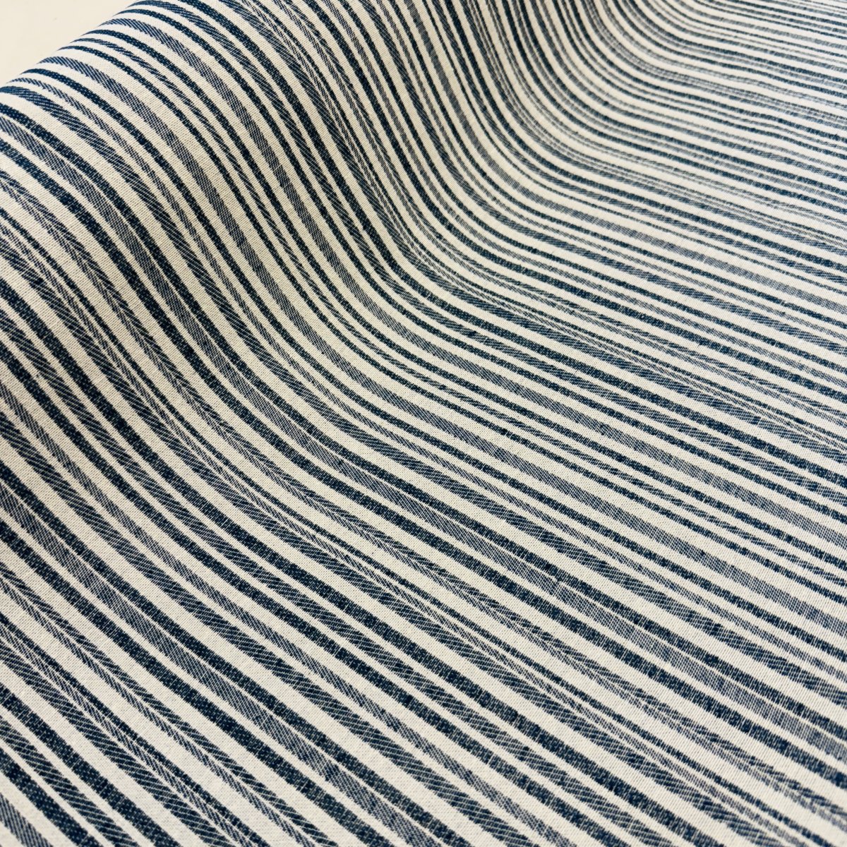 Blå mönstervävda ränder med lite struktur, tygbredd 140 cm, 40% polyester, 60% bomull, 20 000 martindale. slitstarkt passar till att klä om stolar, draperier, bordsduk mm.