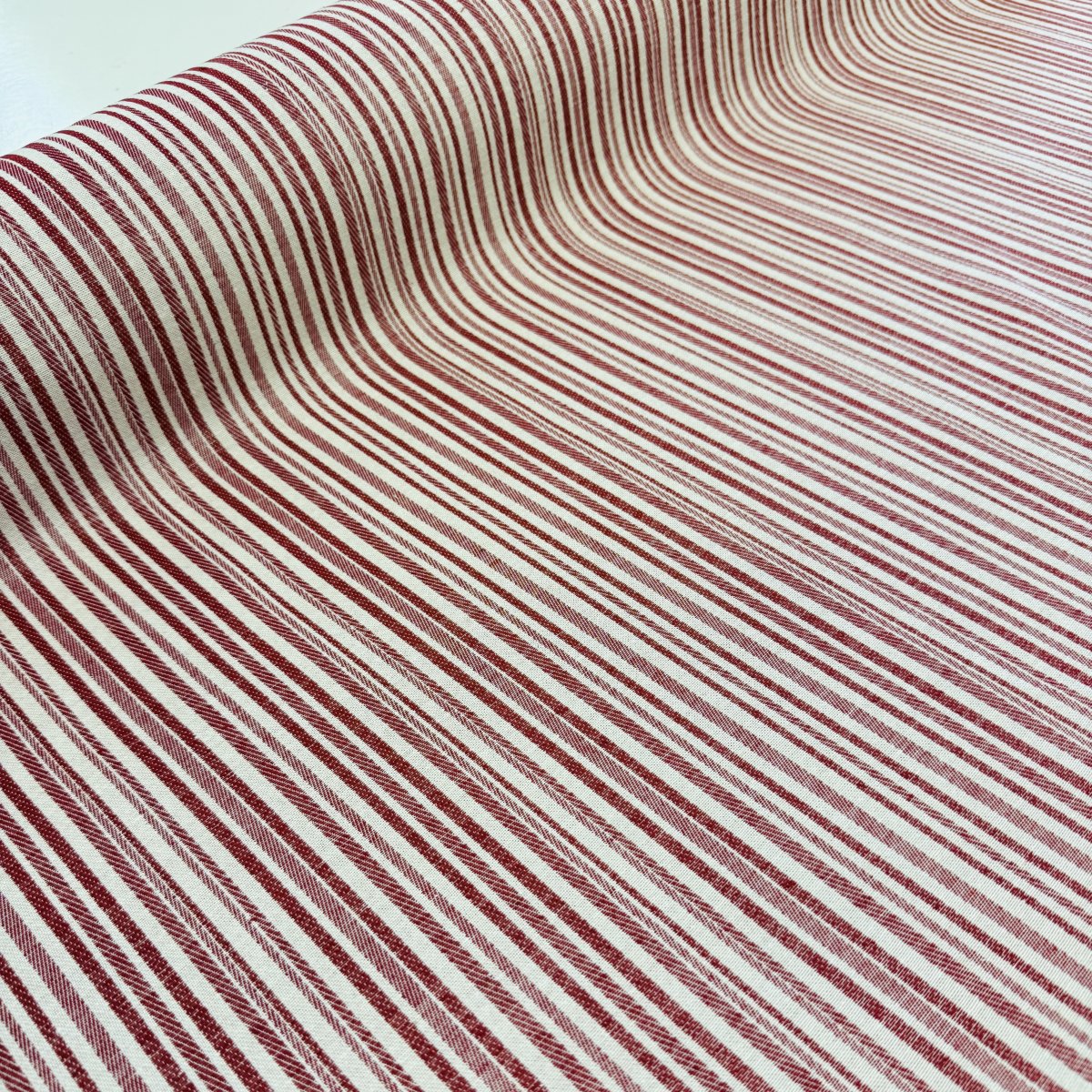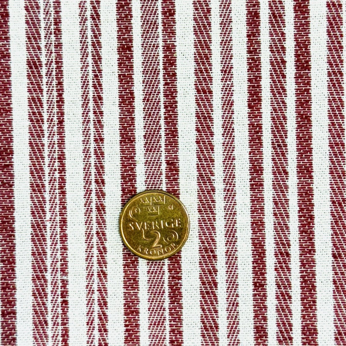 Röda mönstervävda ränder med lite struktur, tygbredd 140 cm, 40% polyester, 60% bomull, 20 000 martindale. slitstarkt passar till att klä om stolar, draperier, bordsduk mm.