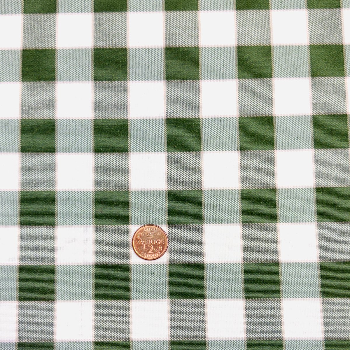 Heminredningstyg/gardintyg med klassiska Gripsholmsrutan i grönt och offwhite, rutorna mäter 2x2 cm. Tyget är i 66% bomull, och 34% polyester, tygbredd 150 cm.