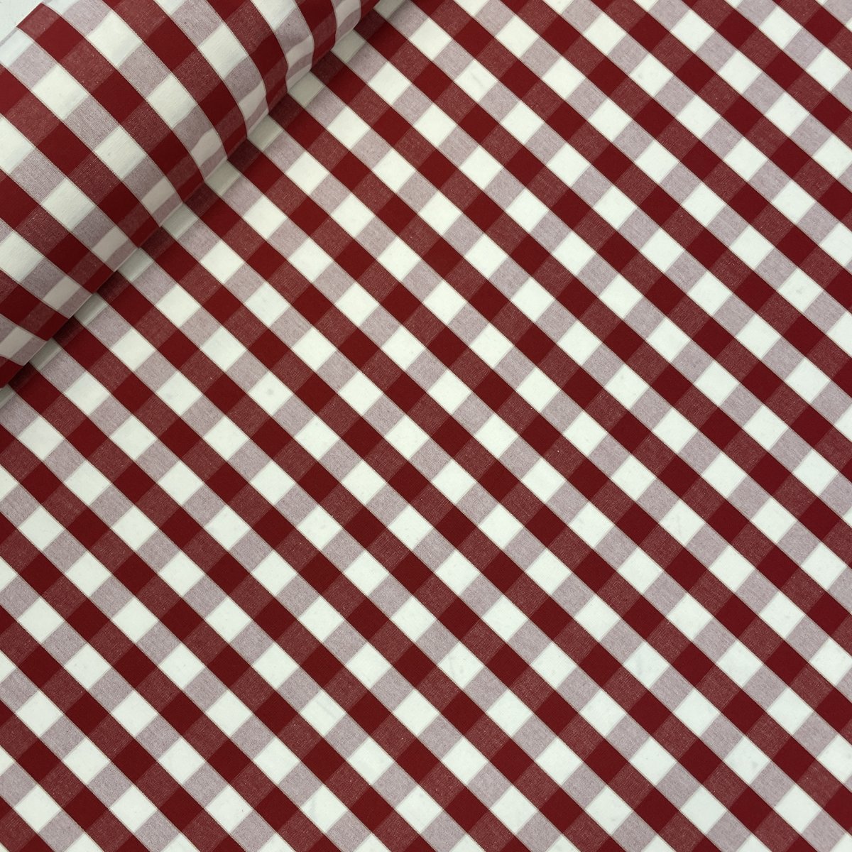 Gripsholmsruta röd/vit, tygbredd 150 cm.
